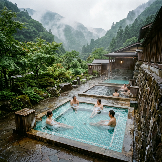 Relájate en las famosas aguas termales naturales que dan nombre al pueblo originario.